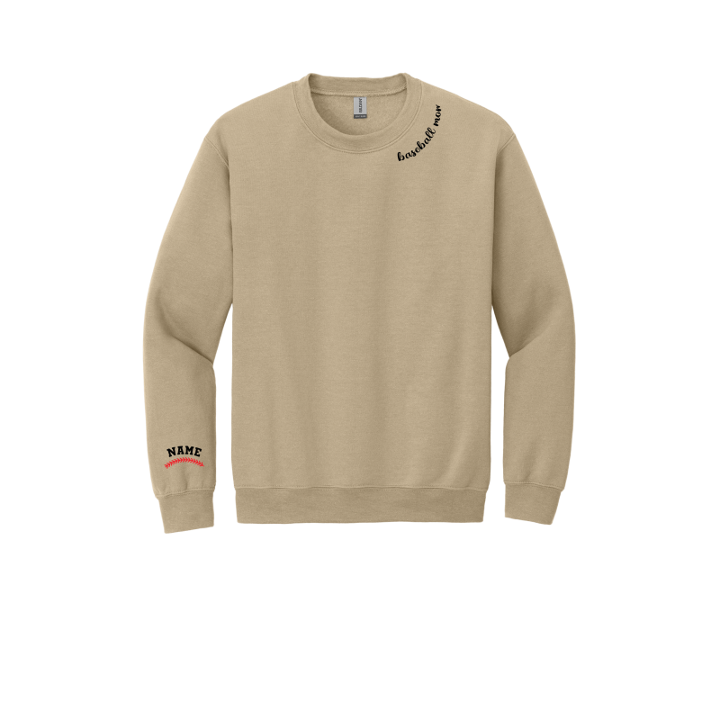 Embroidered "baseball mom" along the neck collar of garment