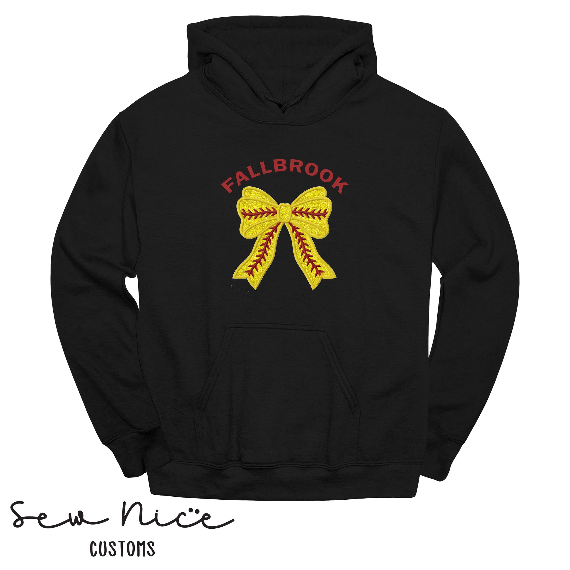 Embroidered Fallbrook Glitter Softball Bow - Adult/Youth Hoodie