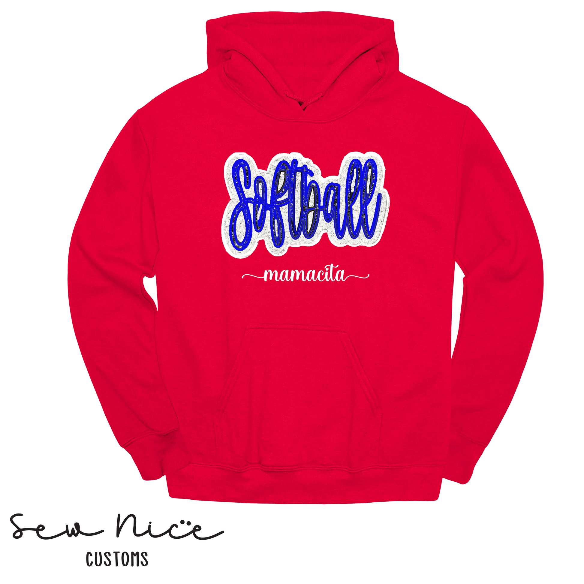 Embroidered Softball Glitter Applique- Unisex Hoodie