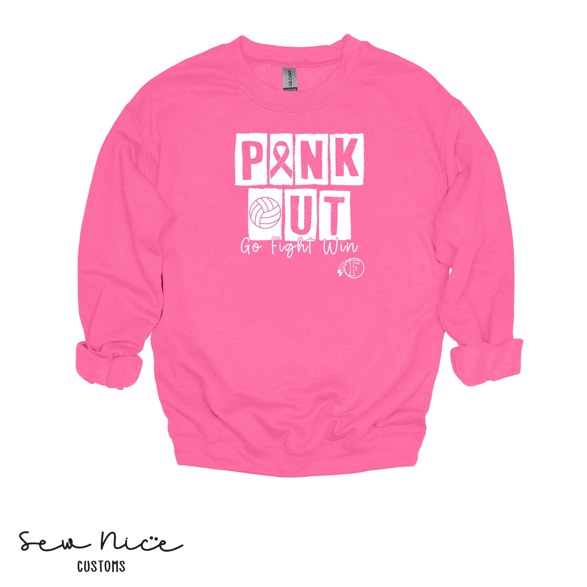 PINK OUT- Go Fight Win- FHS Volleyball- Unisex Adult/Youth Crewneck Sweatshirt