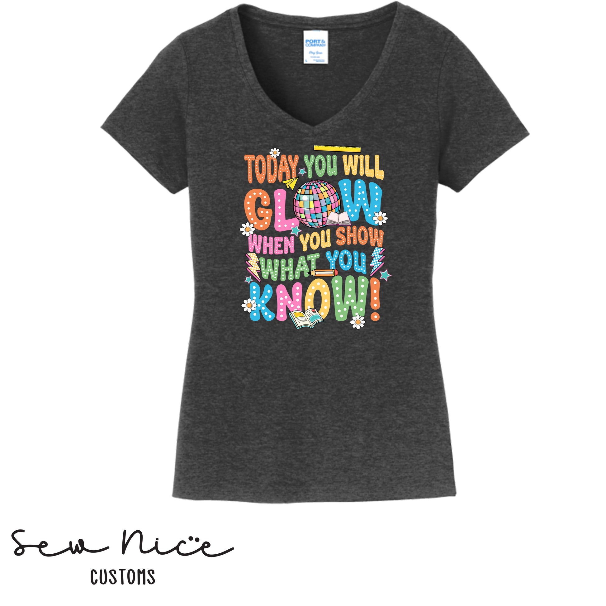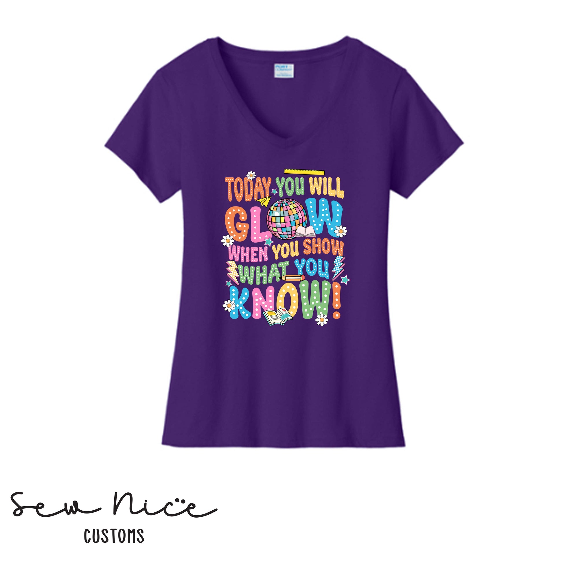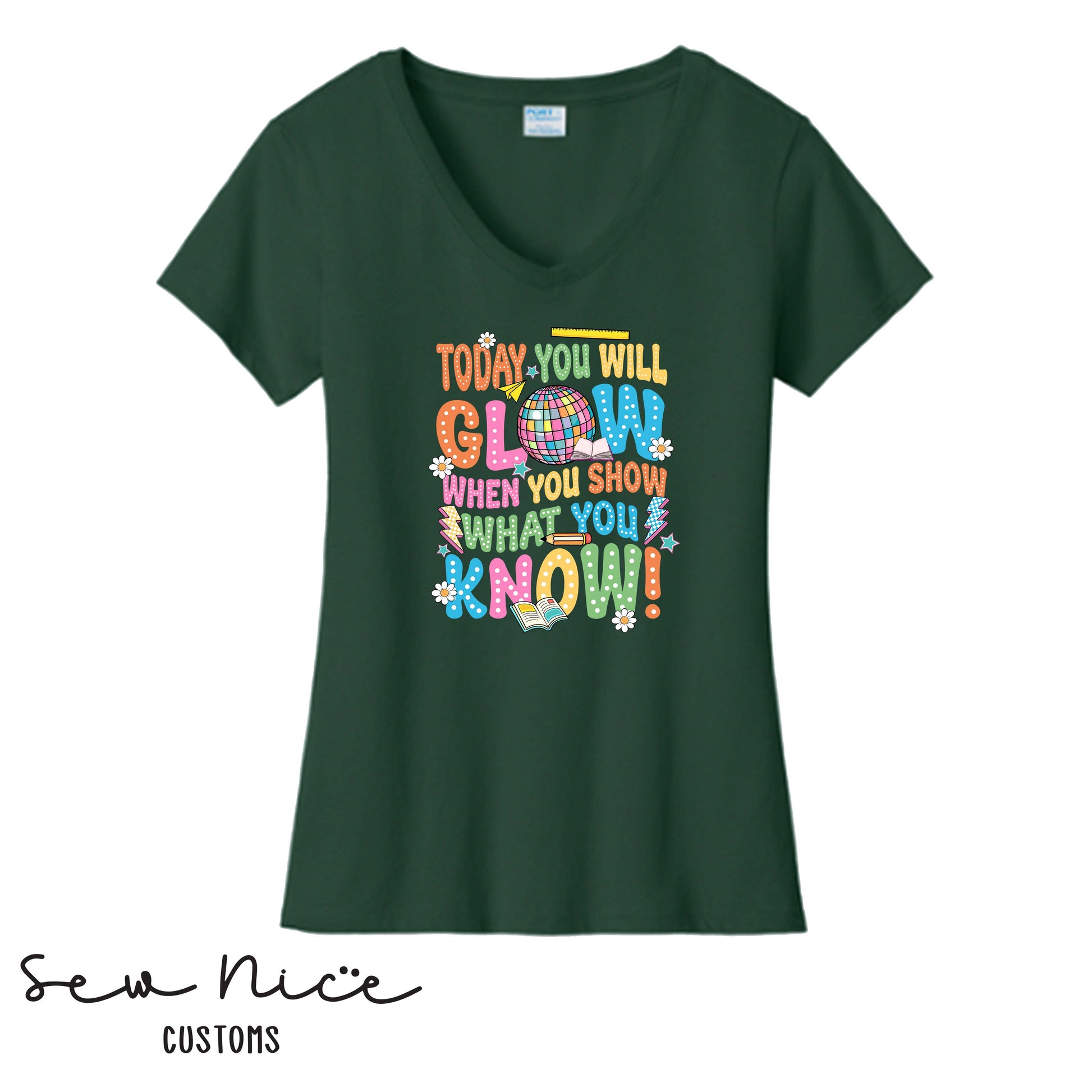Today You Will Glow, When You Show What You Know- Ladies V-Neck (Frazier)